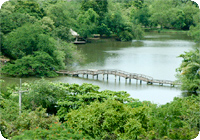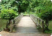 ถัดไปนิดหนึ่งคือสะพานข้ามสระแก้ว คุณเชื่อไหมที่ตรงนั้นทำให้ลืมได้ทุกอย่างเหมือนหลุดมาอยู่อีกโลกหนึ่ง ที่นี่แหละคือสวรรค์กลางมหาวิทยาลัย ปั่นจักรยานเลยไปอีกนิดจะเป็น 3 แยก ตรงกลางมีวงเวียนที่มีปฏิมากรรมสีแดงตั้งอยู่ ด้านตรงข้ามเป็นร้านอาหารสระแก้วบรรยากาศดี ข้าง ๆ มีสนามเปตอง จากวงเวียนถ้าเลี้ยวซ้ายแล้วตรงไปจะผ่านสนามแบดมินตันและตระกร้อ บ้านพักอาจารย์ เลยไปอีกนิดจะเป็นด้านหน้าของคณะศึกษาศาสตร์ ด้านตรงข้ามคณะศึกษาศาสตร์เป็นโรงเรียนสาธิตแห่งมหาวิทยาลัยศิลปากร มีสระว่ายน้ำขนาดมาตรฐาน และสนามกีฬาอีกหลายชนิดที่นักศึกษาเข้าไปใช้ได้และสุดทางเป็นประตูออกไปสู่พระราชวังสนามจันทร์ กลับมาที่วงเวียนถ้าเลี้ยวขวาตรงไปยังสี่แยกหน้าตึก 50 ปี ด้านซ้ายตรงไปประตูออกสู่ถนนราชมรรคา ตรงไปเป็นบ้านพักอาจารย์มีถนนเชื่อมต่อไปยังคณะเภสัชศาสตร์